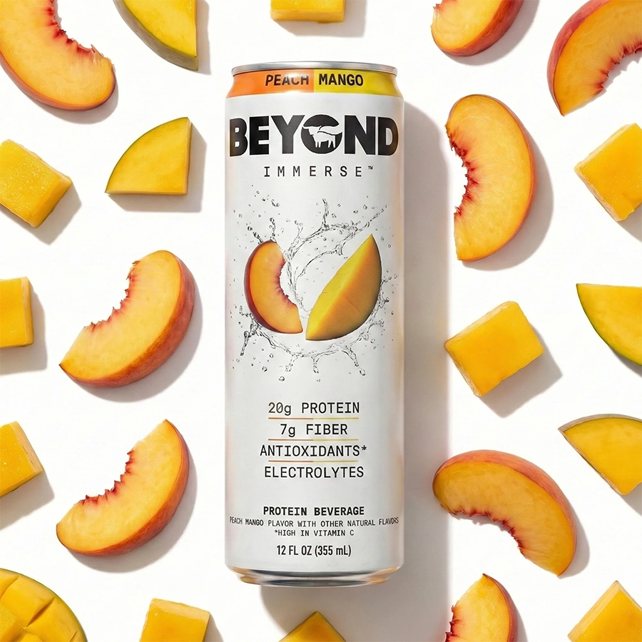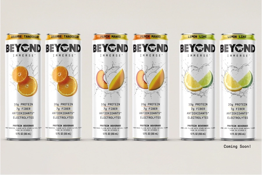 Beyond Immerse consists of plant protein, fiber, antioxidants, and electrolytes, tapping into the rising demand for high-protein, functional beverages. The line debuts in three flavors: Peach Mango, Lemon Lime, and Orange Tangerine.
