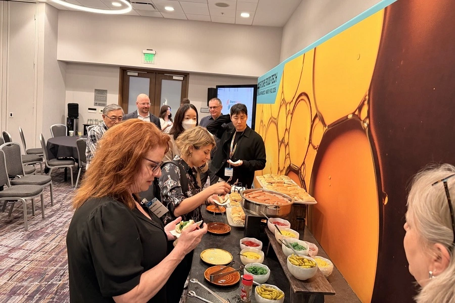 Attendees at the session tasted SternMaid’s clean label hot dog made using red lentil protein and enzyme-enabled technology (Image credit: SternMaid Ingredients).