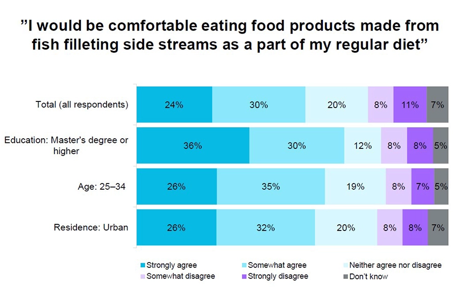 - Most surveyed Europeans are positive or neutral toward seafood sidestream-based foods, especially younger, urban, and sustainability-focused groups.
